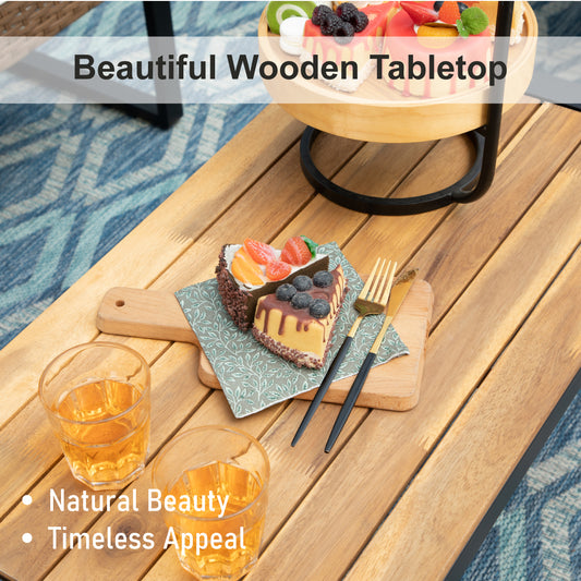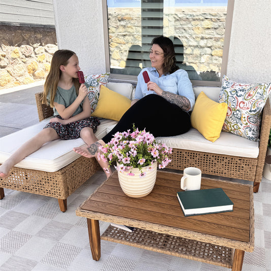 Boho Style Outdoor Wicker Conversation Sofa set with Acacia Wood Coffee Table - Phi Villa