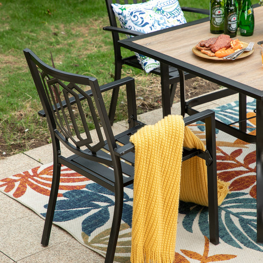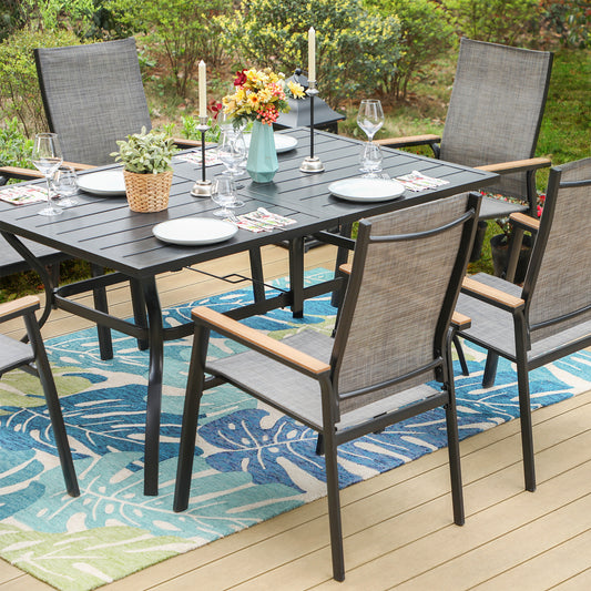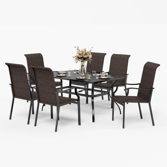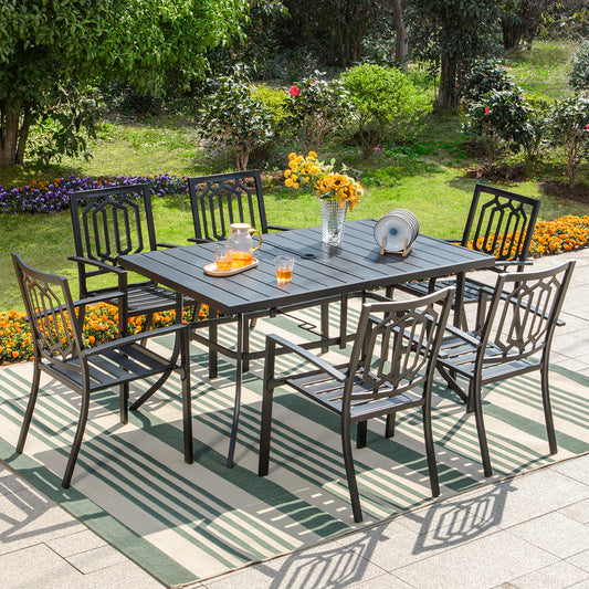 PHIVILLA Rectangle Patio Table and 6 Stackable Chairs 7-Piece Metal Outdoor Patio Dining Sets