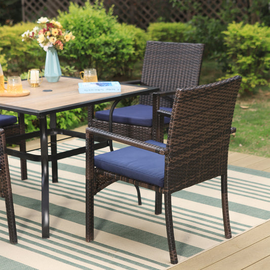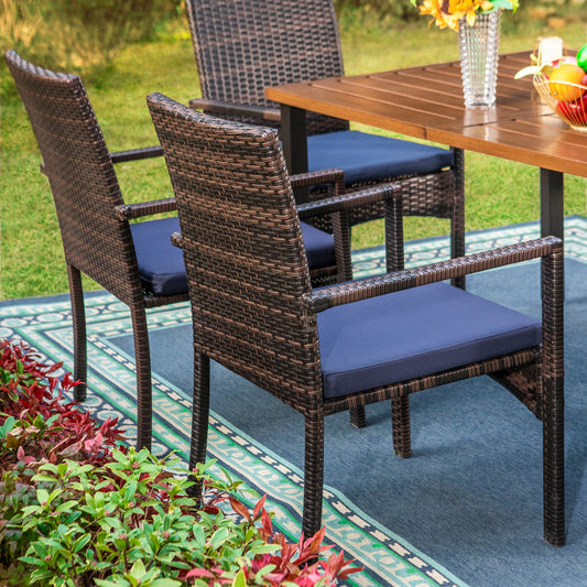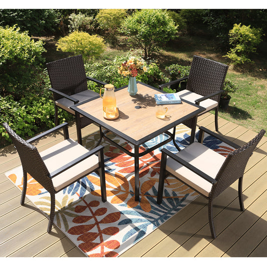 Garden Dining Set 4 Seater Wood-like Table And Rattan Chairs