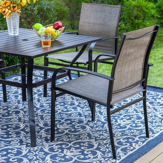 PHI VILLA Garden Dining Set 4 Seater Metal Table And Textilene Chair