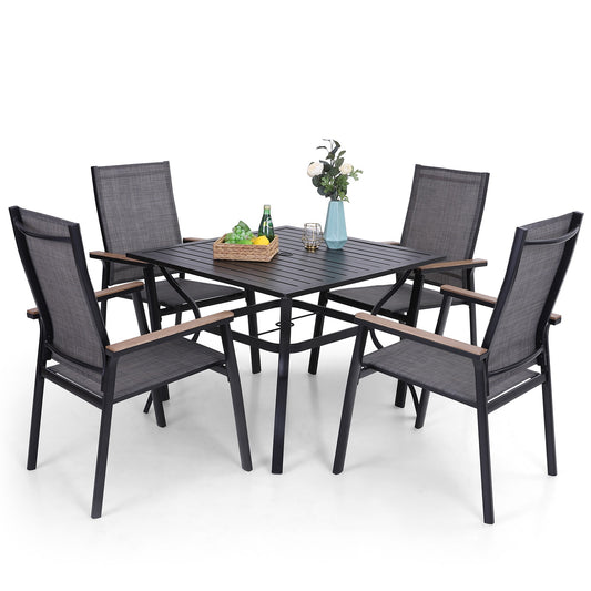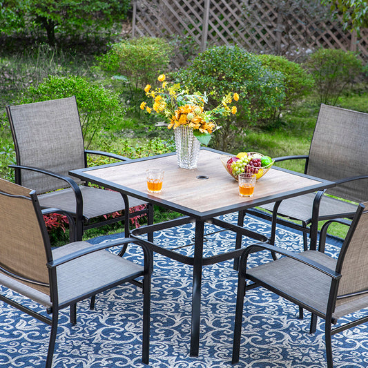 PHI VILLA Garden Dining Set 4 Seater Patio Table and Textilene Garden Chairs