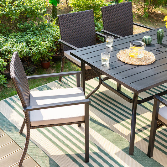 6 Seater Patio Set Metal Table and Outdoor Wicker Dining Chairs