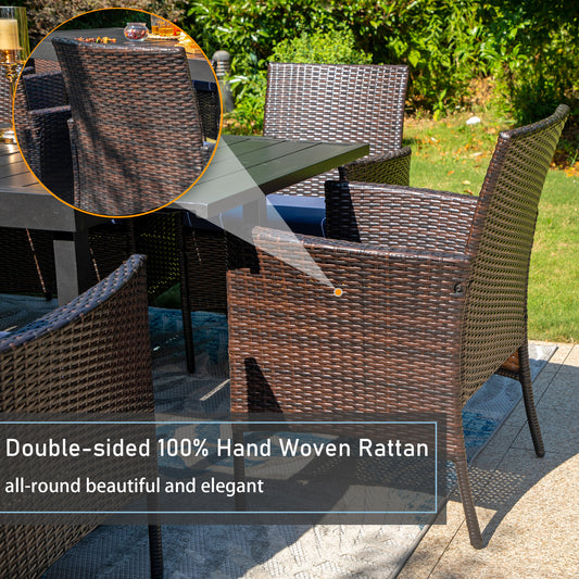 Garden Dining Set 6 Seater Table and Rattan Dining Chair