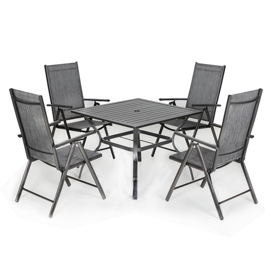 PHI VILLA Garden Dining Set 4 Seater Outdoor Folding Chair and Table