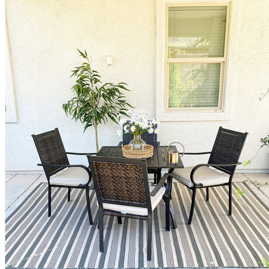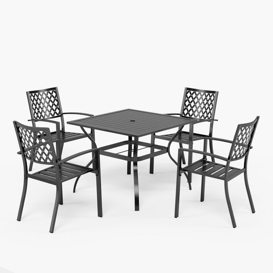 PHI VILLA Outdoor Dining Sets 4 Seater Metal Garden Table and Chairs Set