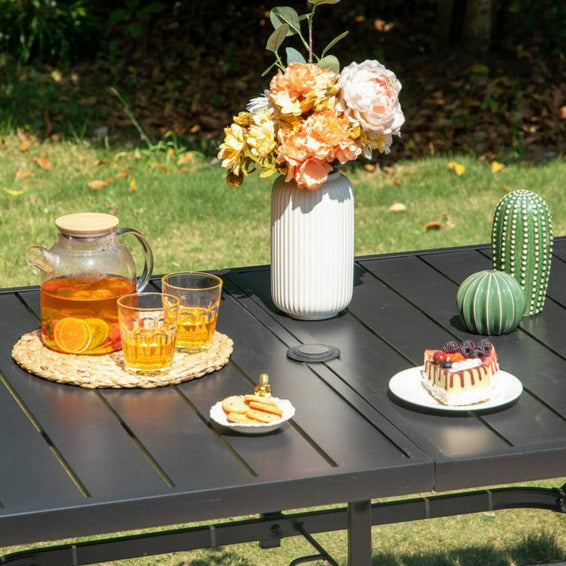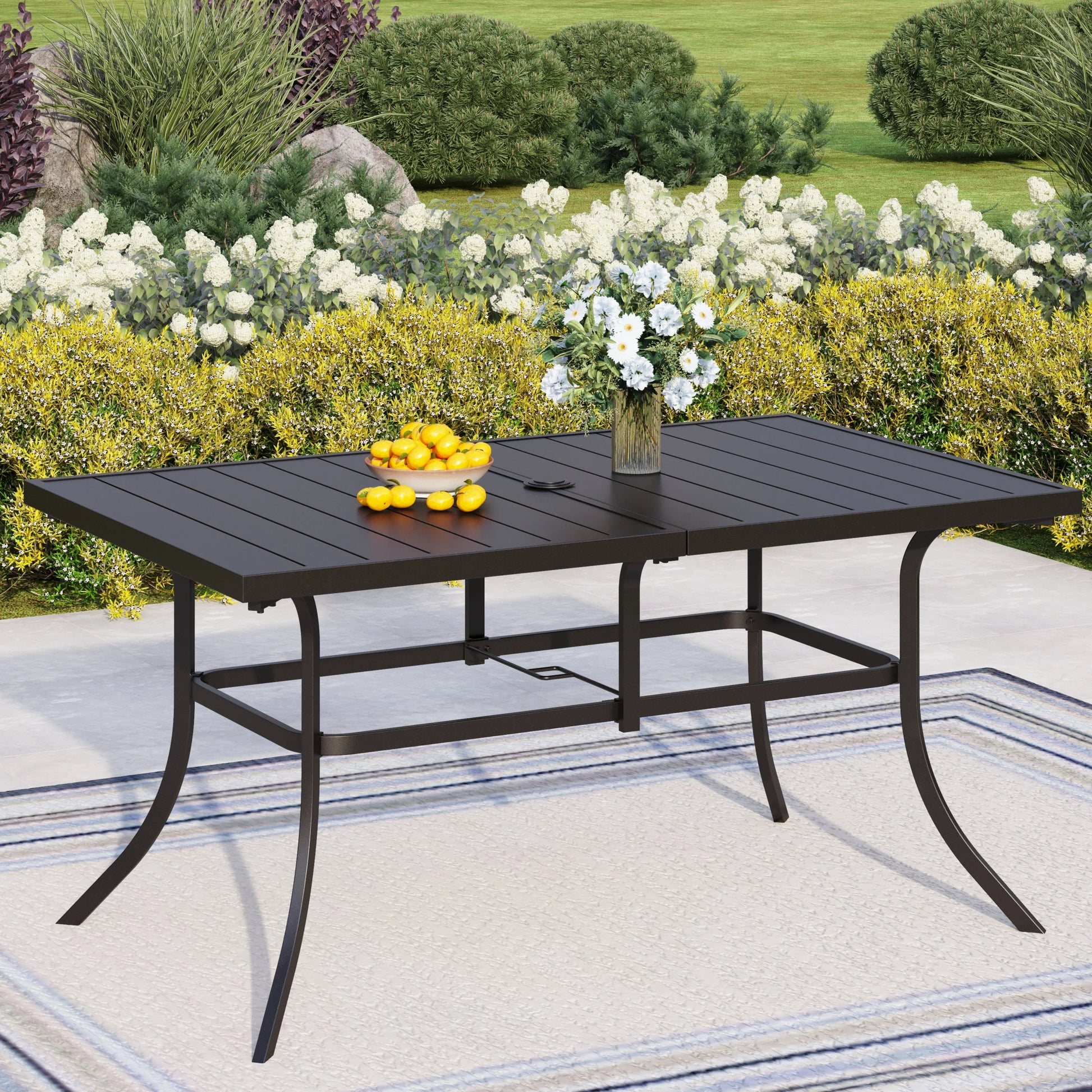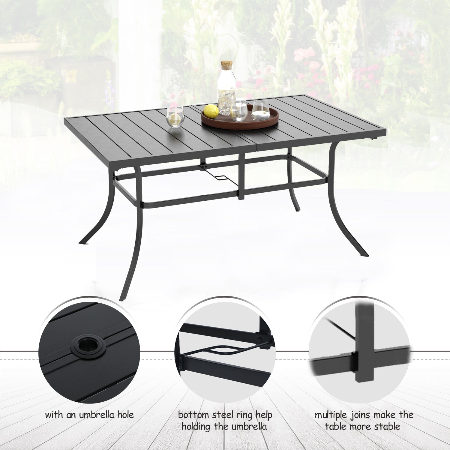 PHI VILLA Panel Steel Rectangle Outdoor Dining Table for 6 Chairs